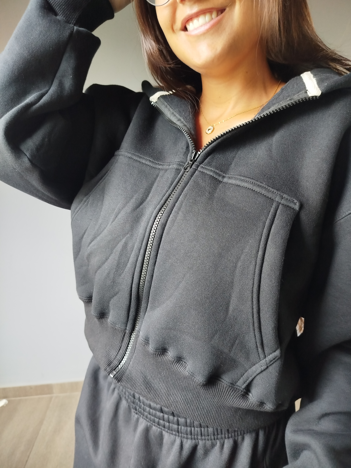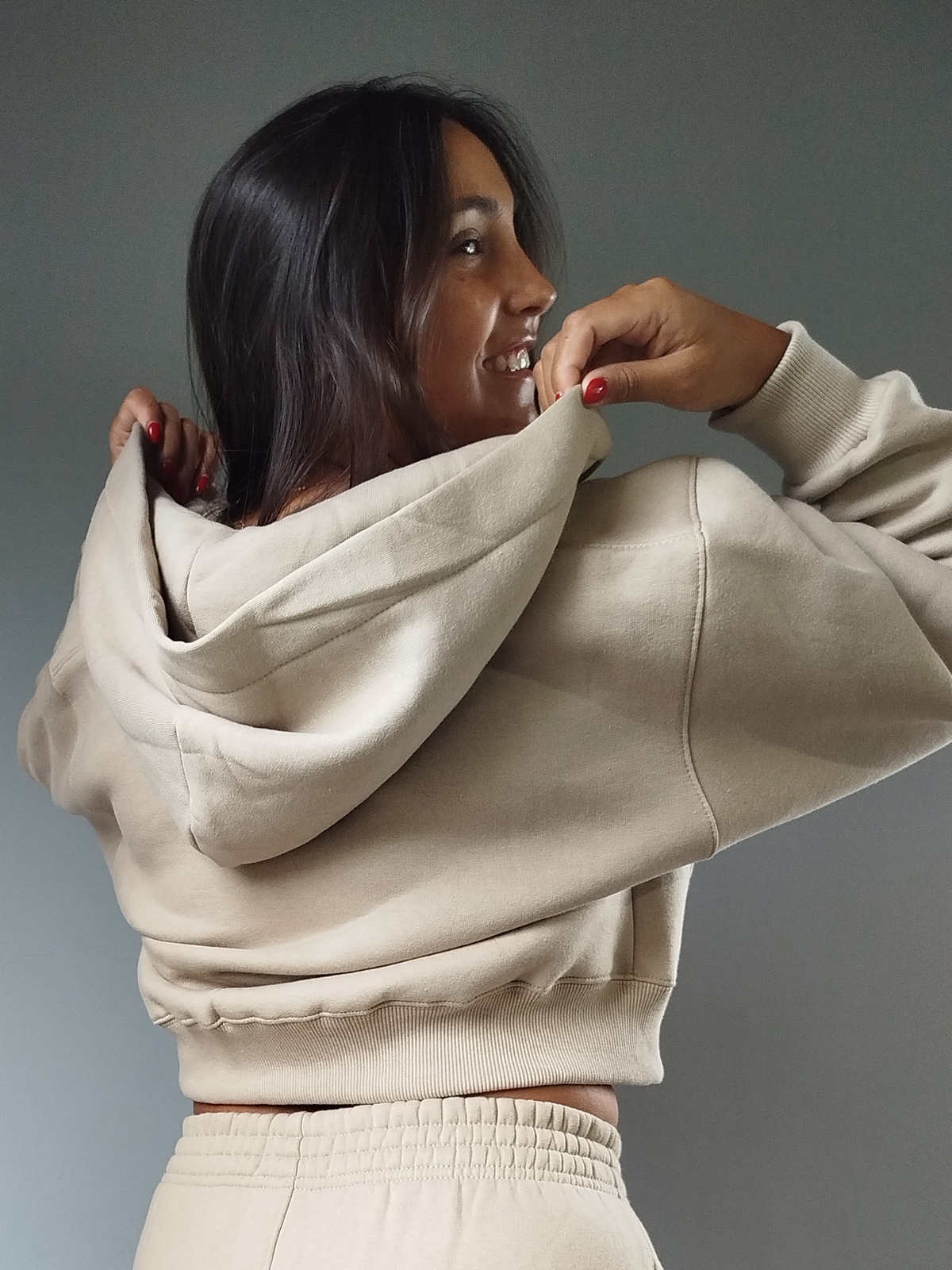 Confeccionada en algodón con friza invisible, es suave por fuera y abrigada por dentro, ideal para esos días frescos donde querés estar cómoda sin perder el estilo.