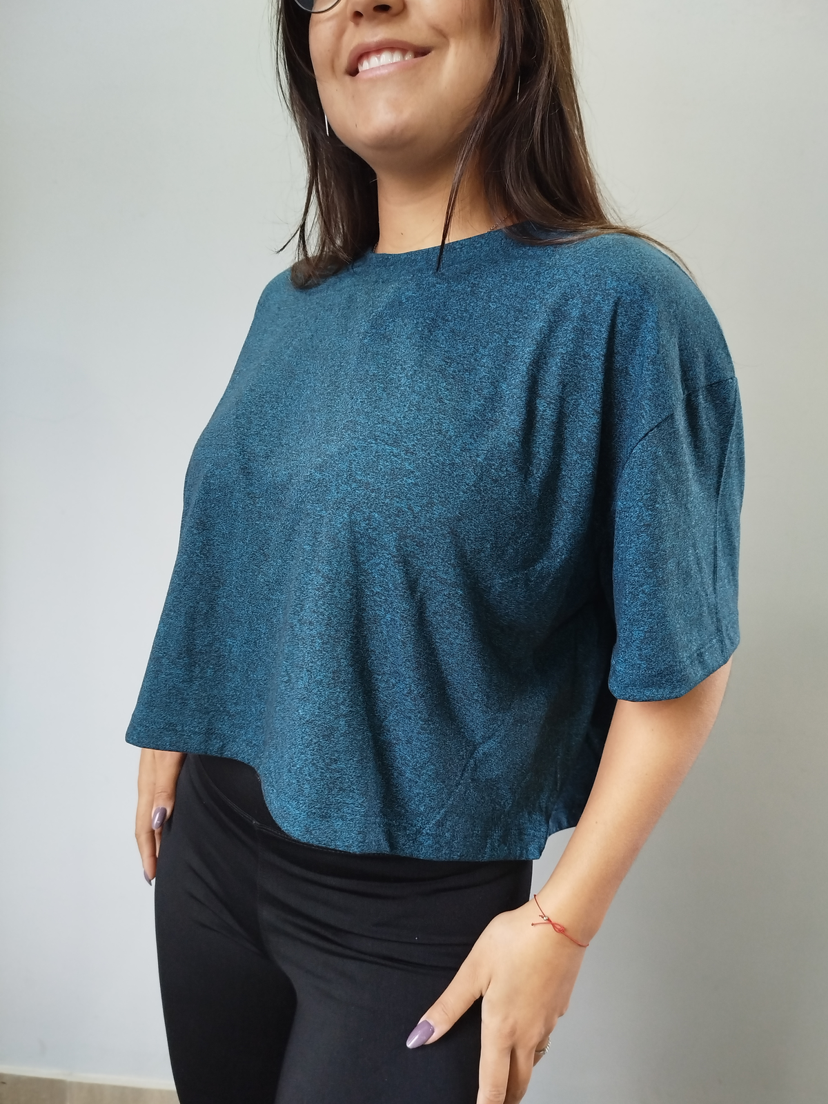 Liviana, canchera y comodísima. Nuestra Remera Corta Moline está confeccionada en tela moline suelta, un tejido suave, liviano y con caída, ideal para moverte con total libertad. Tiene un calce relajado, no se ajusta al cuerpo y su largo corto queda perfecto con calzas o bikers de tiro alto.